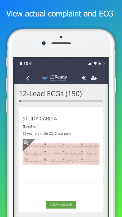 The 12-Lead ECG challenge allows you to choose 5, 10 or 20 strips at a time as well as a feature allowing you to exclude strips you have already mastered from the program.