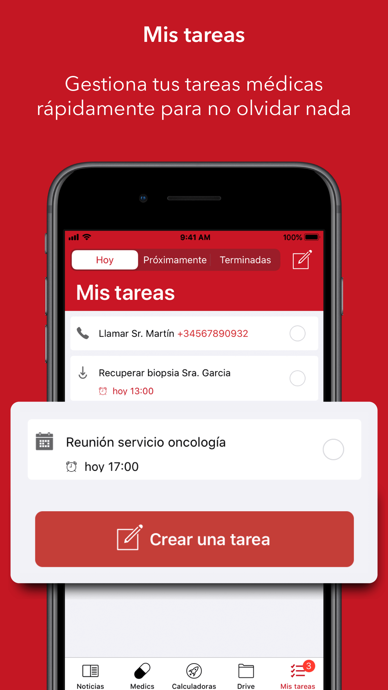 Gestiona eficazmente tus tareas médicas. En menos de 5 segundos, crea una tarea clara y legible, con o sin recordatorios.