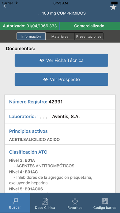 Entre otros muchos datos, y como documentos más importantes por recoger las condiciones de uso autorizadas de los medicamentos, la aplicación ofrece acceso a la ficha técnica (o resumen de las características del producto) y los prospectos.