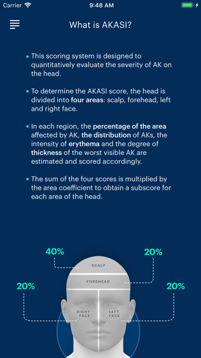 La suma de las cuatro puntuaciones se multiplica por el coeficiente asignado para cada zona, de forma que se obtiene una subpuntuación para cada zona de la cabeza. El AKASI total se obtiene sumando las subpuntuaciones de cada zona, y es un valor comprendido entre 0 (sin QA) y 18 (QA actínica del grado más intenso).