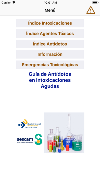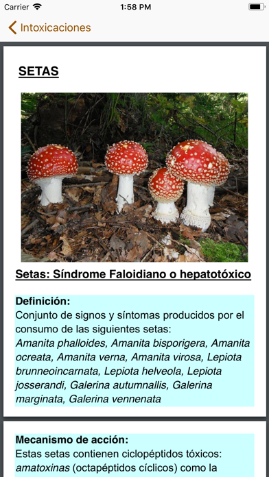 La APP ANTÍDOTOS, “Guía de antídotos en intoxicaciones agudas” está organizada en 31 capítulos cada uno de los cuales hacen referencia a un tipo de intoxicación concreta y contiene la siguiente información detallada: