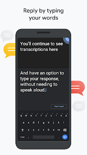 • Type responses in your conversation. Bring up your phone’s keyboard and type your words for a continuous dialogue. Transcriptions still appear while you type.