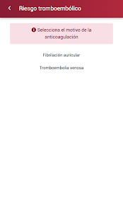 • Type of treatment and drugs. The user doctor indicates which treatment the patient is following, whether anticoagulant or antiaggregant, and selects the drugs. Depending on the selection, the app will identify the patient’s thrombotic and hemorrhagic risk, classifying it as «high», «medium» or «low».