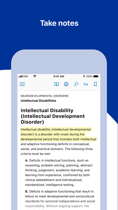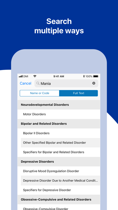 La Aplicación Móvil de Criterios Diagnósticos DSM-5™ proporciona a los profesionales de la salud mental, investigadores y estudiantes de la salud mental un rápido acceso a códigos y criterios vitales de DSM para que puedan integrar por completo los nuevos datos en su práctica y sus estudios. Los usuarios tienen acceso completo fuera de línea a todos los conjuntos de criterios, además de acceso en línea a vídeos, comentarios y recursos de apoyo. Sus poderosas herramientas de personalización y de búsqueda ayudan y mejoran la valoración de las presentaciones de los síntomas en diversos entornos clínicos y administrativos.