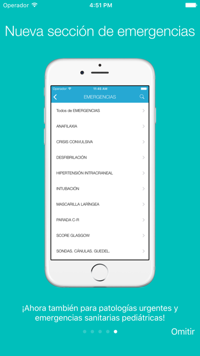 – Sección Emergencias: Dosis calculadas según el peso del niño para procesos de urgencia vital, patologías urgentes y emergencias sanitarias pediátricas.