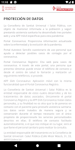 La Conselleria de Sanidad Universal y salud Pública es la responsable y autora de la información que se muestra en la aplicación, además, garantiza la privacidad y protección de tus datos (http://coronavirusautotest.san.gva.es/proteccion-datos-es.html). Asimismo, la Conselleria garantiza que se almacenará y utilizará la información personal de un modo suficientemente seguro, durante el tiempo necesario y solo para proporcionarte los servicios personalizados anteriormente descritos.