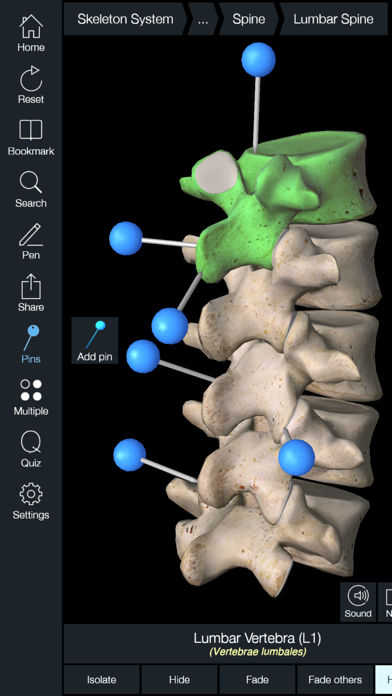 Essential Skeleton 4 is responsive, visually stunning and effortless. The app is fully 3D, meaning that you can easily manipulate the skeleton and individual bones, as well as view them in isolation from any angle. Our new Multiple Selection Mode allows you to select multiple bones and isolate, hide or fade them.
