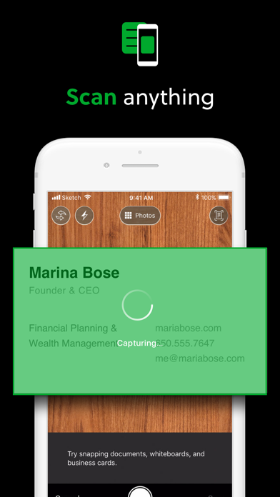 • Utiliza la captura de la cámara para escanear y hacer comentarios fácilmente sobre trozos de papel, incluyendo documentos impresos, tarjetas de visita, texto escrito a mano y dibujos
