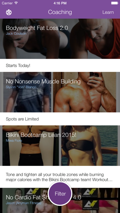 • Free workout routines: get awesome workouts from the best fitness coaches, whether you’re at home or at the gym