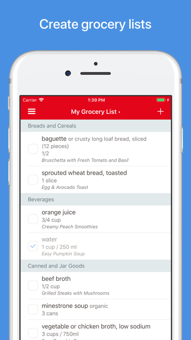 • Listas de la compra: crea listas de la compra inteligentes que combinen ingredientes automáticamente y los clasifiquen por pasillos.