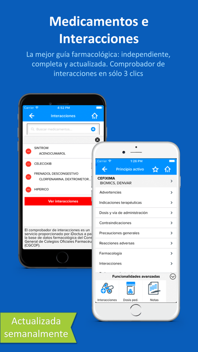 – El vademecum, la guía farmacológica, las interacciones medicamentosas y las calculadoras médicas se almacenan localmente, por lo que se puede usar la aplicación sin conexión.