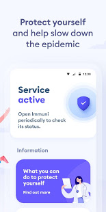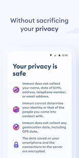 Immuni es la aplicación oficial del Gobierno italiano para las notificaciones de exposición, desarrollada por el comité extraordinario para la emergencia del coronavirus en colaboración con el Ministerio de Salud y el Ministerio de Innovación Tecnológica y Digitalización. La aplicación se ha desarrollado y lanzado en total conformidad con la protección de los datos personales del usuario y con la legislación vigente, incluido el decreto ley italiano del 30 de abril de 2020, n. º 28.