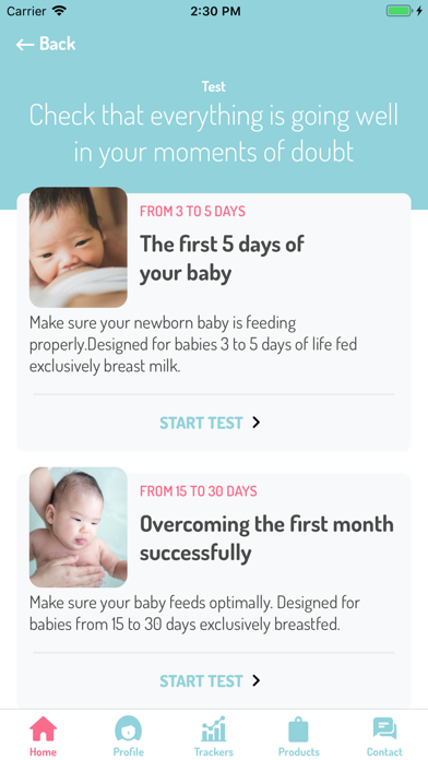 LactApp también incluye planes personalizados para preparar la vuelta al trabajo y conseguir una lactancia materna exclusiva, así como fáciles y útiles test de lactancia que te ayudarán a tomar decisiones en relación a la maternidad: ideales para saber cuándo tu bebé está preparado para comer sólidos, o si se encuentra en un buen momento para mamar, o confirmar que la lactancia funciona correctamente.