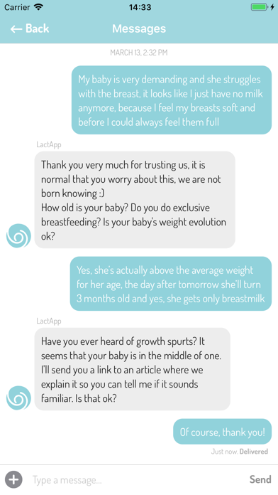 LactApp es la primera app de lactancia capaz de resolver todas tus dudas de lactancia materna y maternidad de forma personalizada. Puedes consultar la app ya desde el embarazo, el inicio de la lactancia, el primer año de tu bebé o cualquier etapa de la lactancia, hasta el destete.