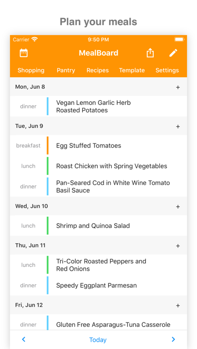 • Create meal plans, organized by day and meal type