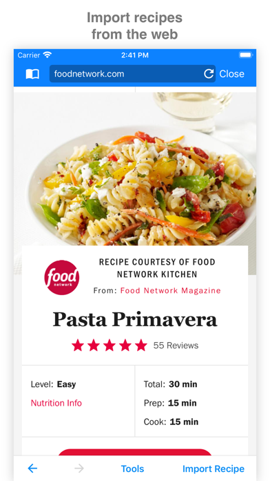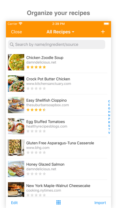 • Import recipes from recipe websites, or add you own recipes