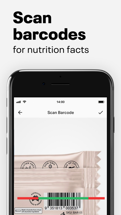 • Barcode Scanner — Simply scan barcodes to log foods. 4+ million barcodes recognized.