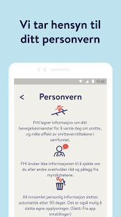 Cuando usa Infect Stop, FHI procesará su información personal. Lea más sobre esto en la declaración de privacidad de Smittestopp. La información personal recopilada solo puede usarse para el propósito definido en la declaración de privacidad, y no para monitorizar si las personas cumplen con consejos o instrucciones. La información de salud o los datos de ubicación no se ponen a disposición de la policía, los fiscales, para fines de seguros o empleadores. Los datos personales no pueden ser explotados comercialmente. Como regla general, su información personal no será procesada por personas.