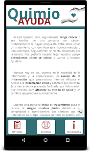 Gracias a esta aplicación podrá acceder de manera gratuita, en cualquier momento a un conjunto de consejos que puede hacer usted mismo en casa, para controlar, evitar o minimizar los temidos efectos secundarios producidos por el tratamiento con quimioterapia, hormonoterapia o inmunoterapia.