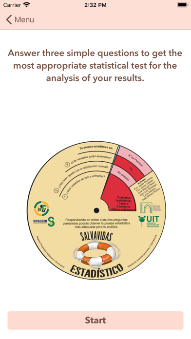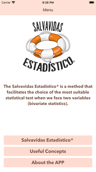 El objetivo del dispositivo físico “Salvavidas Estadístico” y el de esta app, es facilitar una guía de 3 pasos para llevar a cabo un análisis bivariante de forma independiente, aplicando los conceptos estadísticos requeridos en los distintos campos de la ciencia. Por medio de la elección del enfrentamiento de dos variables y de la evaluación de sus características mediante 3 preguntas se obtendrá la prueba que mejor se adecúe a cada situación dentro de un estudio de investigación, en concreto en el análisis de resultados. Se plantean tres preguntas.