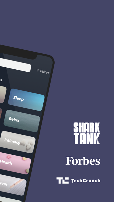 Nuestras sesiones de bienestar y terapia del sueño ofrecen atención guiada y meditación, motivación diaria, sesiones de sueño guiadas y entrenamiento por expertos de renombre mundial, personalizados para la forma en que vives tu vida. Te ayudaremos a sentirte menos estresado, a dormir mejor y a ser lo mejor que puedas, ya sea que tengas 5 minutos por la mañana, 20 minutos durante tu viaje o necesites dormirte rápidamente. Comience su hábito simple de forma gratuita hoy y viva mejor cada día.