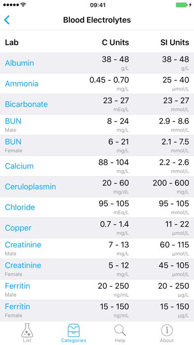 Esta aplicación, optimizada en la pantalla del iPhone, permite un acceso rápido y simple a los valores normales de laboratorio más utilizados.